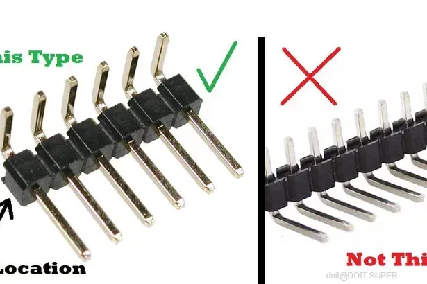 最后,确保您有正确类型的直角公头 2.54mm 接头。两种常见类型具有不同的止动块位置。您需要长脚上有止动块的类型,如本步骤中的图片所示。使用错误的类型将导致 PCB 无法装配在一起。