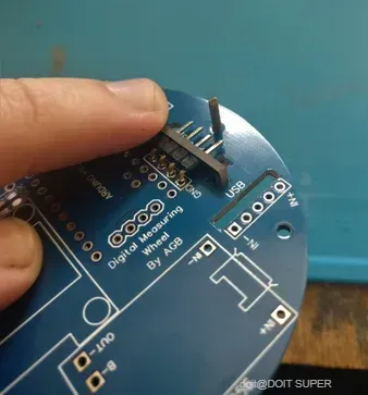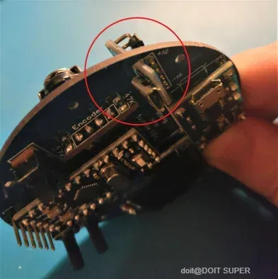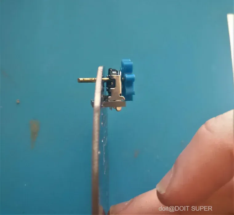 接下来,将上一步组装好的编码器和齿轮机构焊接到PCB上。编码器应与47K电阻位于同一侧。
