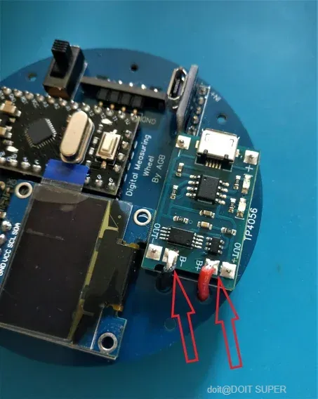 您需要为 TP-4056 板使用单接头。请勿将接头焊接到 B+ 和 B- 通孔。