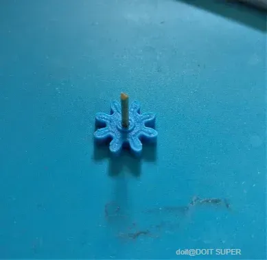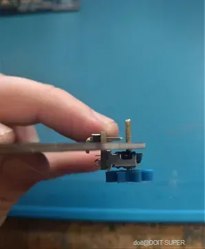 首先将直径为 1/16 英寸的金属棒切割成约 14 毫米长的部分。然后将金属棒插入并粘合到小内齿轮中,如图所示。齿轮的一侧会有一个凸起的小圆圈。插入后,该圆圈应朝向金属棒的长边