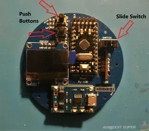 按照 PCB 上的指示将按钮和滑动开关焊接到位。您必须将开关的侧面突出部分折断。