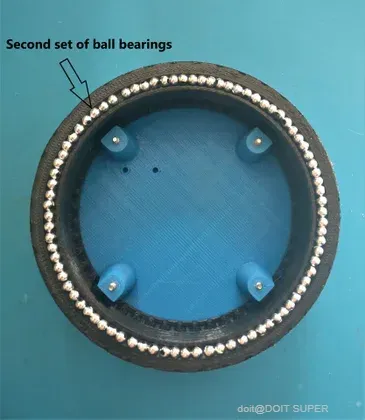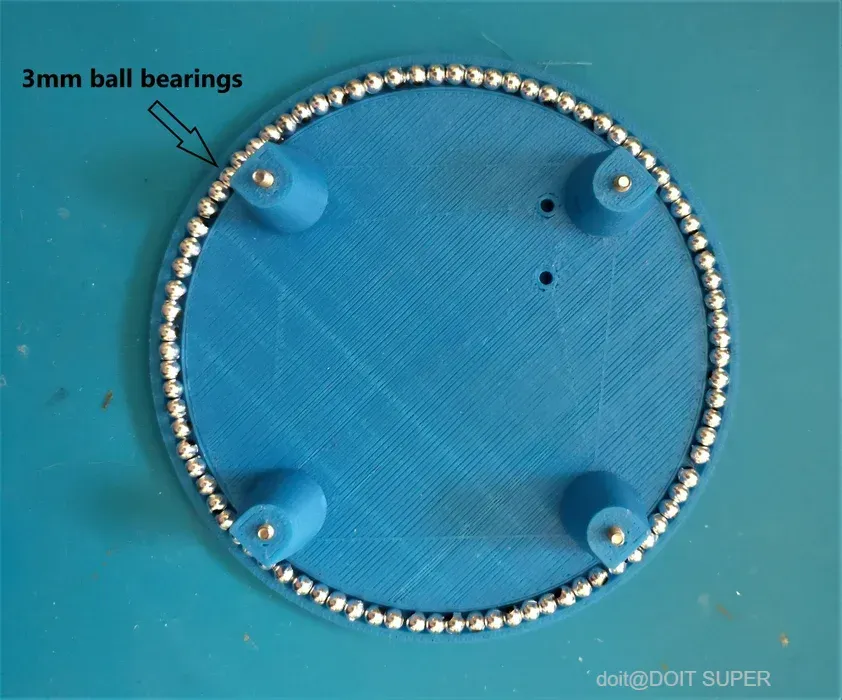 取下底板,将 8mm M2 螺钉穿过四个支撑柱。然后将底板放平,并将 3mm 滚珠轴承添加到其外槽中(如图所示)。再滴几滴轻油。