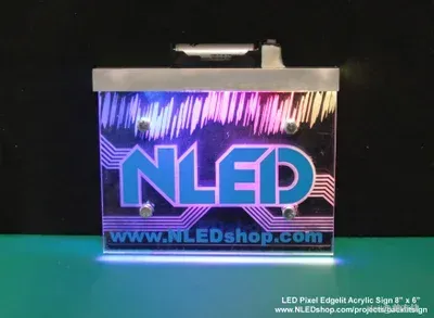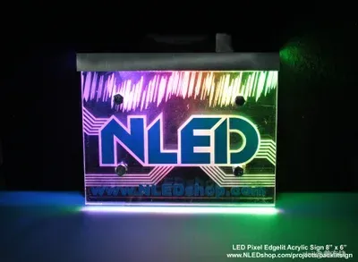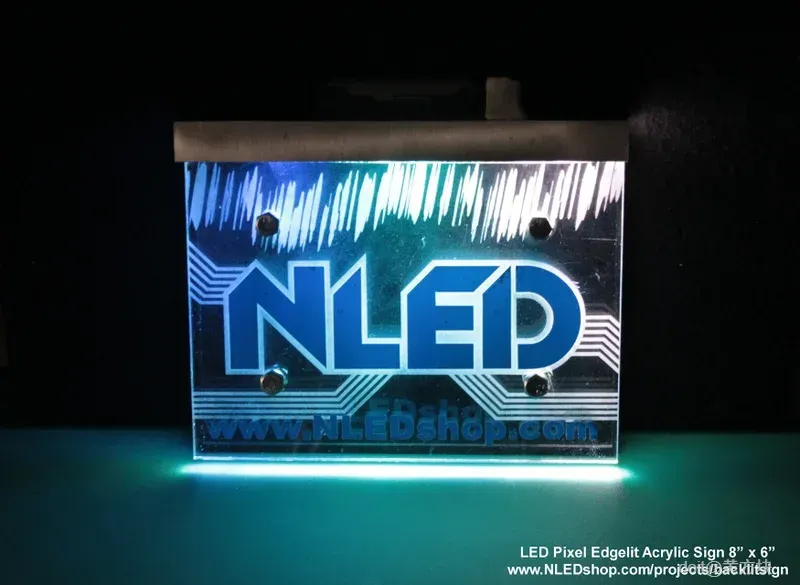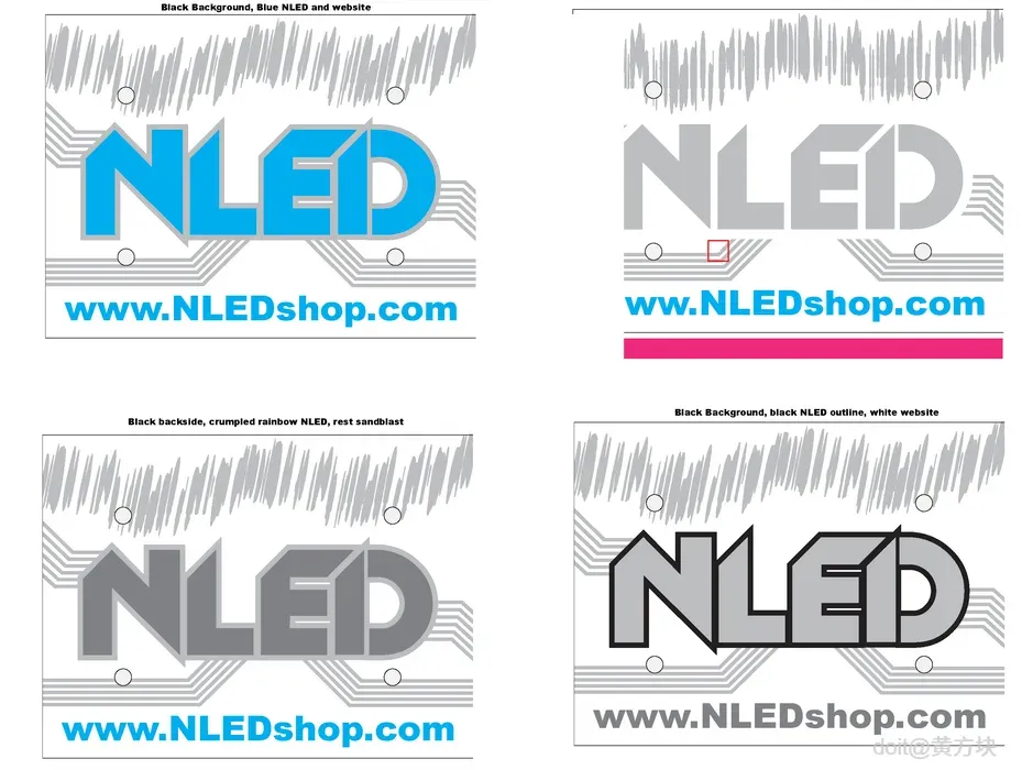 这个项目的想法是利用一块剩余的 0.25 英寸透明亚克力板,上面已经有四个孔。我们根据已知的尺寸和孔位置创建了一个 Adobe Illustrator 文件。我们决定标识的点亮方式是从顶部而不是底部。标识将以 NLED 标识为特色,顶部饰有模拟北极光图案,并添加一些细节,使其看起来像一块 PCB 板。最后再用一层彩色乙烯基(浅蓝色/青色)来添加额外的细节,使某些方面更加突出。