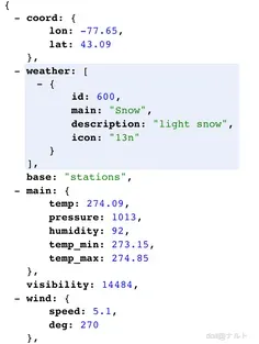 在Particle控制台的“集成”标签页中创建Webhook,以从OpenWeatherMap API请求天气信息。在OpenWeatherMap.org上应用appid和天气API。获取带有邮政编码和appid的当前天气API调用,例如https://samples.openweathermap.org/data/2.5/weather?zip=94040,us&appid=b6907d289e10d714a6e88b30761fae22。此API响应将采用JSON格式。