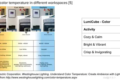 根据西屋电气公司提供的指导,针对不同的工作状态定义了三个灯光色温范围: